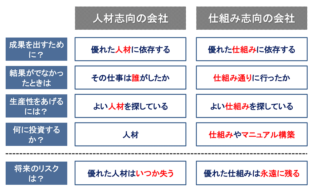 経営者の思考には“人材志向”と“仕組み志向”の2つがあると。